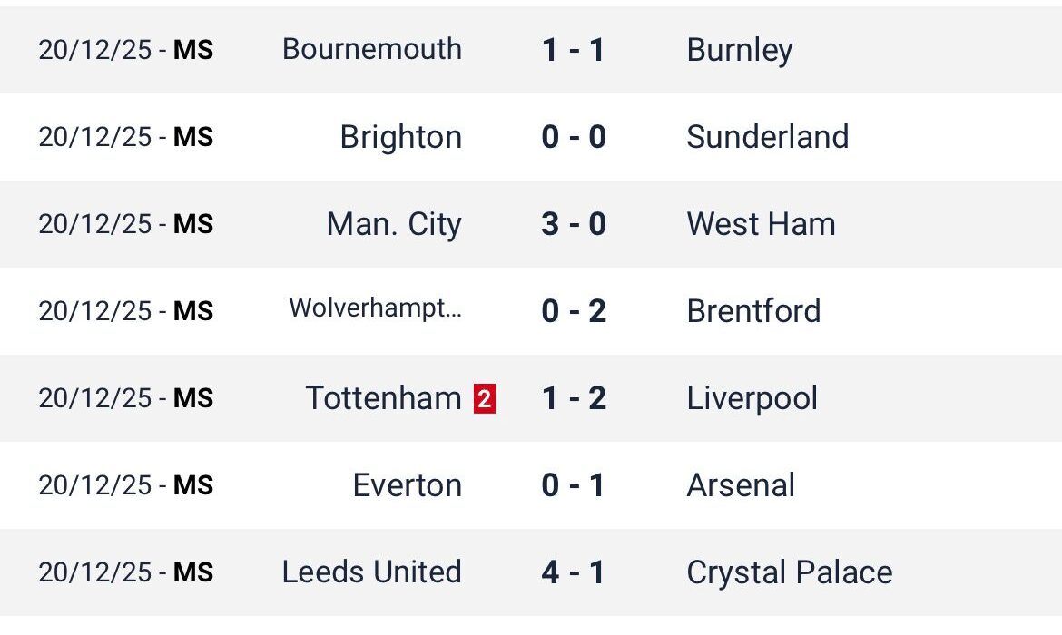 Bournemouth and Burnley played out a 1–1 draw, while Brighton and Sunderland settled for a goalless stalemate. These results highlighted defensive organisation but also raised questions about attacking efficiency for both sides.